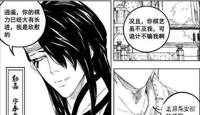 而郭嘉的能力如果不是因为英年早逝,其声望甚至可以比肩诸葛亮,高于司马懿的。无论如何都算是全明星阵容了。而且,因为郭嘉守护的是郭逍遥,所以这也算是一招秒棋,所以可以理解为郭嘉并非完全忠于曹操,是即忠于曹操也想守护自己的后人,郭嘉作为谋臣的忠诚就显得没有武将那般愚忠。所以作为一个热血向漫画,作者应该也会安排如此,即致敬小说历史,又有了那份顶级阵容的设定。这种设定,即可以偷懒不用设定人物,也可以不用解释来龙,是最省力的安排。