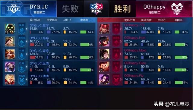 2019年kpl秋季赛胜者组决赛迎来了DYG.JC和QGhappy的对决,虽然赛前很多玩家更看好QGhappy,并且QGhappy对阵JC的战绩很好,但是鉴于昨天AG的表现,所以很多网友都看好JC。虽然这场比赛并不能直接淘汰两个队伍,由于胜者组的一条命,双方任何一方输了都还有机会杀回总决赛,但是由于AG昨天堪称大魔王级别的表现,所以双方都不想碰到AG超玩会,所以这场胜者组决赛双方都会全力以赴。有意思的是今天QGhappy和JC也达到了第七局,前六局双方有来有回,可以说非常精彩,堪称昨天的盗版,下面花儿就来给大家讲一讲当时的比赛情况!第六局双方阵容: