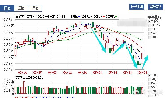 自4月底以来,美股走出了短期的单边下跌趋势,从技术图形来说,短期跌幅过大,有反弹要求,而从交易心理来说,现在很多人看空美股,认为要走出‘三重顶’,为了刺激空头的神经,打爆部分空头仓位,偶尔来几次大涨也是很合理的,至于大涨之后是否会再起一波下跌趋势,那就要看市场反应了,不排除再创新高的可能!