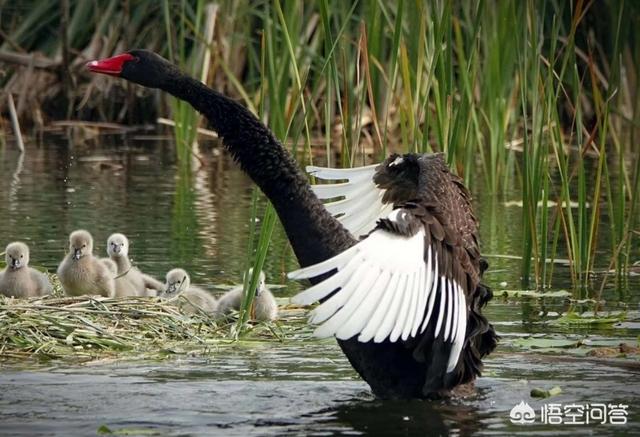 在黑天鹅的家庭里,雄鸟和雌鸟共同承担孵化和育雏的重任。