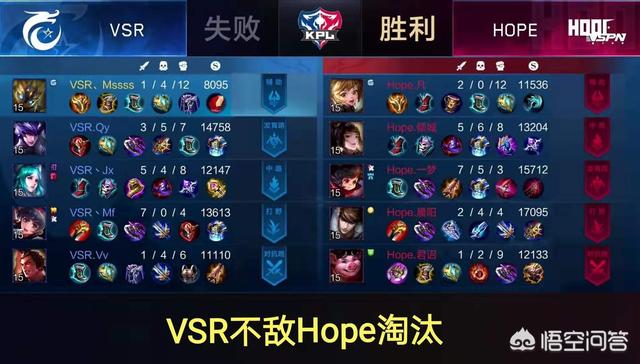 2019KPL席位赛还剩下最后一场总决赛,经过近一周的激烈PK之后,最终9支队伍还剩下了2支,也是本届预选赛实力最强大的KSSC和Hope战队,作为关注度最高的VSR,在胜者组决赛输给了KSSC,随后的败者组决赛再次不敌Hope战队,淘汰出局止步3强。他们真的已经尽力了,但是实力上的差距让他们还是以失败告终。