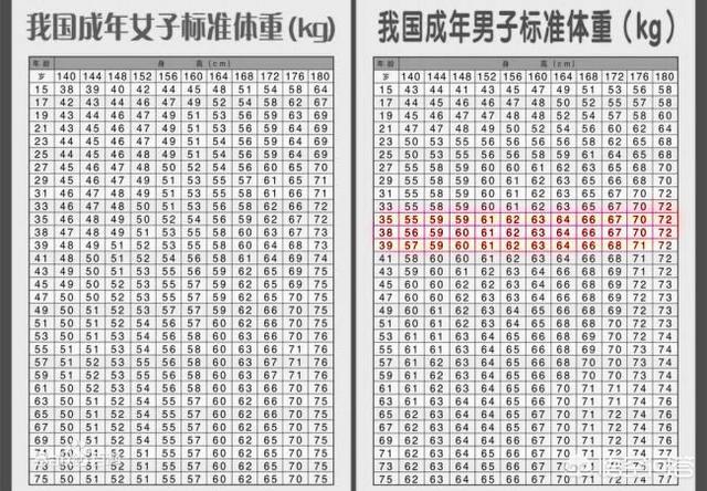 因为体重降不下去了,当时在网络上找原因,找到了这张“成年男子、女子身高与体重”对应表。