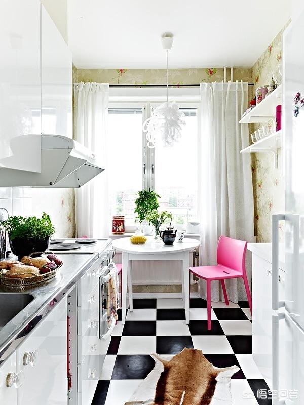厨房面积小,厨房的色调越亮越显得宽敞,建议你用白色调,这样厨房亮趟,显得厨房宽敞!