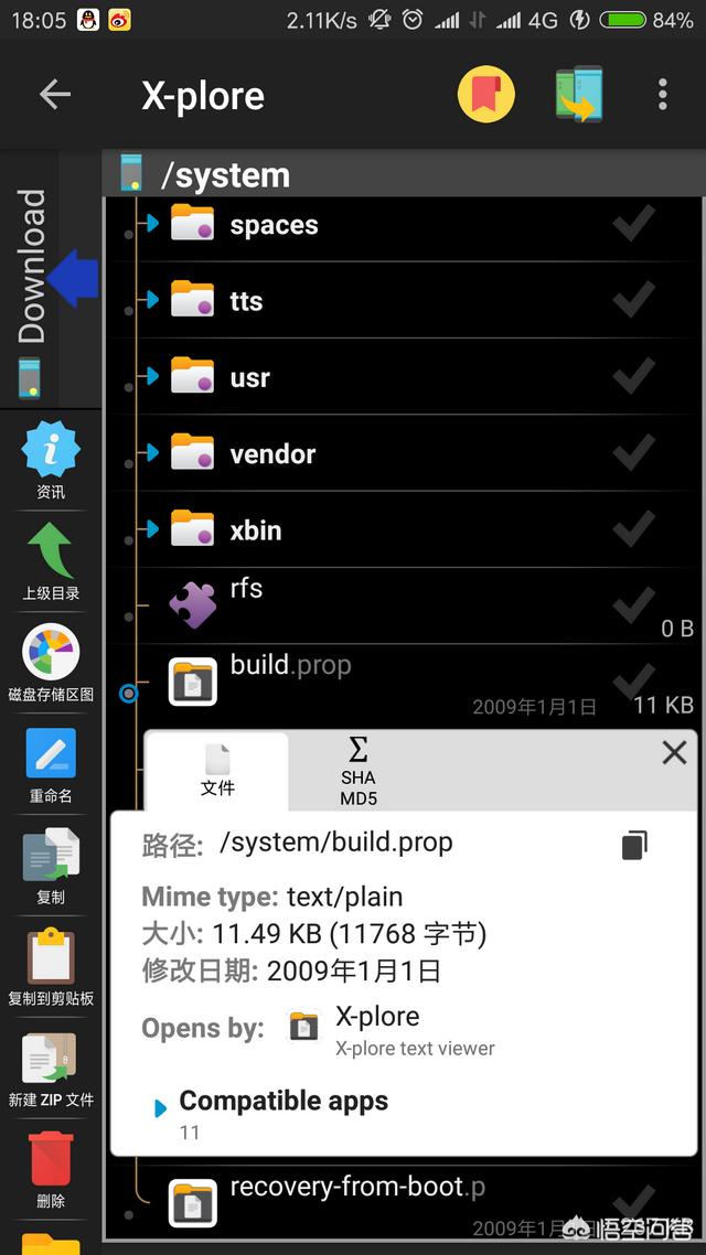 只需如何修改,首先你要用高权限的文件管理器,我本人使用xplore文件管理器(当然也有很多人问我干嘛不用Re文件管理器,主要我在塞班时期用习惯了哈),你也可以使用Re,MT等其他的,挂载读写后,打开/system/build.prop ,如下图的文件