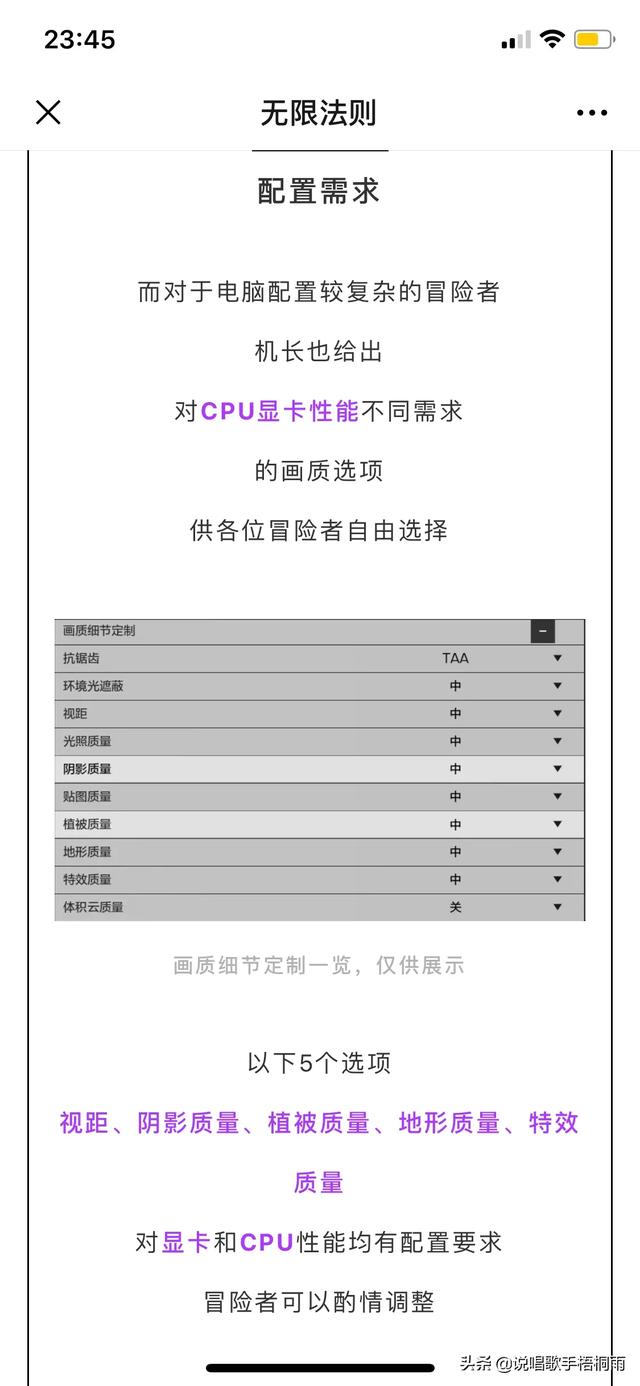 无限法则的机动性更强,导致游戏实际进行是立体战斗的。游戏的滑翔翼让你可以无声无息的从天而降进行突击;钩索装置让你像科幻电影一般在楼宇山间飞梭;自行车让你灵活赶路的同时不停的变换阵地。现在还更新了盾牌,影像装置,急救枪等等,这一点就明显的丰富了游戏的多样性。在游戏画质上有根据显卡优化的各种参数设置,还可以自行设置视距、阴影质量、植被质量、地形质量、特效质量等,也是相当不错的。