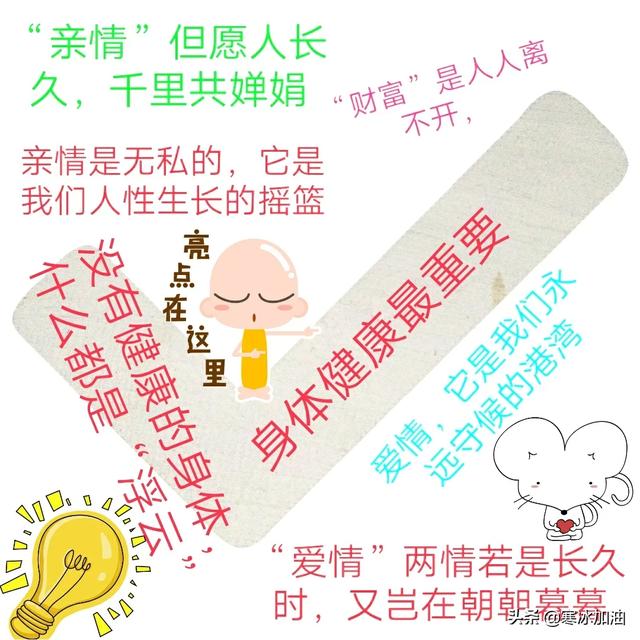 寒冰自认为“健康”才是最大的财富,虽然金钱固然重要,但是没有健康的身体什么都是浮云,珍重“亲情”,它是我们人性生长的摇篮,珍重“爱情”它是我们永远守候的港湾,