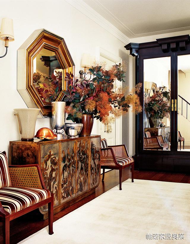 家具陈设讲究对称,重视文化意蕴;配饰擅用字画、古玩、卷轴、盆景,精致的工艺品加以点缀,更显主人的品位与尊贵,木雕画以壁挂为主,更具有文化韵味和独特风格,体现中国传统家居文化的独特魅力
