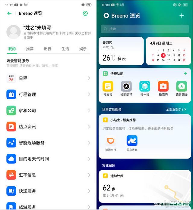 除了设计,ColorOS 6还有很多人性化的升级。比如首次搭载全新人工智能Breeno,通过大量硬件传感器,结合用户所处场景和日常行为数据,感知使用者的行为,并进行运算,提前预测。同时,Breeno还可以识别主人语音执行操作,如果你对着它说:我想听《沙漠骆驼》,它就会自动打开默认的听歌APP搜索歌曲,然后进行播放。只要普通话过得去,它的精准度还是很高的。