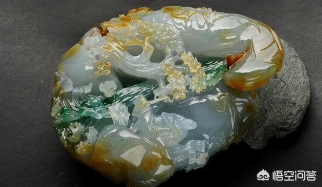 此外还有一些翡翠除了三种颜色之外还带有其他颜色,像这样的:白、黄、红、青,也不是福禄寿