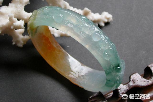 像这种镯子,底色是白色,带有少量青色,和黄色,这样的,就是三色翡翠,但它不属于福禄寿翡翠。