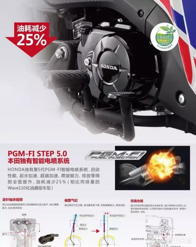 除了上述亮点之外,新大洲本田国四全新威武110还搭载了本田第五代PGM-FI电喷系统,同时还有带曲轴偏心、滚针轴承摇臂等本田正宗技术,除了动力性和平顺性大大增强,油耗更是比化油器版WAVE下降25%,经济性和环保性有了一定的提升。不论是颜值,还是综合性能,国四威武都是弯梁车中出类拔萃的。