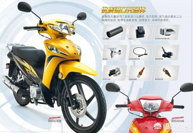 第一款新大洲本田飘悦110 这是一款搭载电喷系统比较早的车型,并且这款车的用户口碑也比较好,所以这款车可以作为首选车型。
