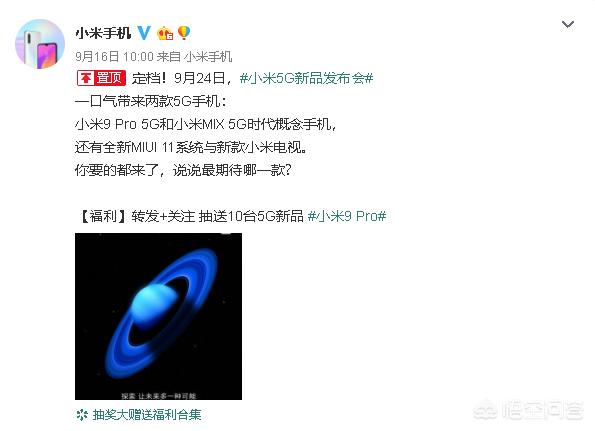 9月24日小米将推出两款5G手机,一款则是小米9pro,另外一款是小米mix 5G版本。相信很快就能揭晓谜底了,但是对于小米推出新品价格这个方面一定会震撼的,因为主打性价比的售价嘛,所以自然价格也不会太贵!