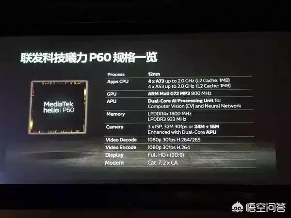 首先我们先来分析一下联发科p60的硬件参数,cpu方面提升非常大,直接上了4个主频为2.0GHz的A73大核心,4个主频为2.0GHz的A53小核心,运算能力不输骁龙660,不过在gpu上联发科采用的Mali G72 MP3,频率达到800MHz,只能说达到够用的程度但运行大型游戏还是非常有压力的。