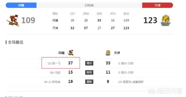 CBA常规赛第37轮,同曦队109-123败给了弱旅天津队。两队积分排名早已无法冲击季后赛,所以胜败也不是那么重要。同曦队小将郭一飞在本场比赛砍下创新高的37分,但加入国家队还是不太可能。