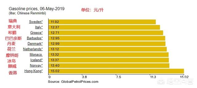 世界上汽油价格最高的国家和地区是哪里呢?看下图: