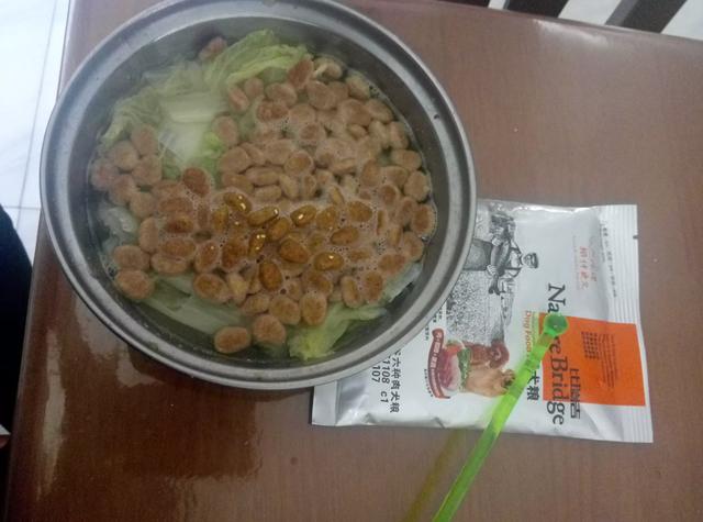 最开始我家的就是喂这个,下面煮的白菜,后来有改成