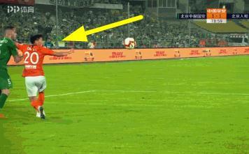 那对于这个点球的判罚是否值得商榷呢?焦点就在于曹永竞是否有意拦截。质疑者的观点就是曹永竞解围抡空,身体失去平衡下所做出的惯性动作,并非是有意识的拦截犯规。