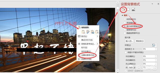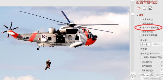 第一步,类似效果1,设置背景格式为图片或纹理填充。