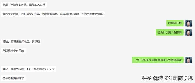 除了老板之前没有接触过,不懂怎么接单获客之外,还有一个现实情况就是,即便你很厉害,很在行,你会发现现在这个市场,传统的推销形式已经不再那么好做了,线下蹲小区,开发商分批次交房,业主拿房已经找好公司了,打电话的话,老板业务员都得抓起来,买来的名单也被别人转手很多次了,客户根本就不接或者接了两三句就挂掉了。