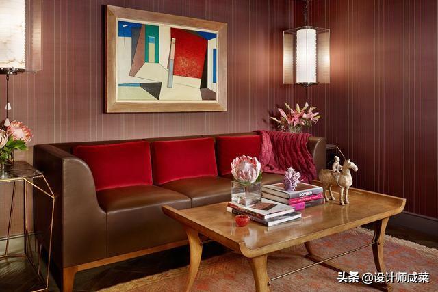 酒店的用色一般都比较浓重,棕色、红色、黄色的对搭,可以营造温暖舒适的氛围。