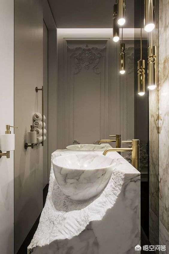 二、卫生间装饰手法为了节约空间,酒店空间的卫生间各功能都进行了简化缩小,但这样的做法在住宅空间中特别忌讳。住宅空间毕竟是需要长久生活的区域,所以一定要在功能上满足使用功能,不可简化缩小。