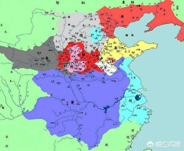 我们可以从这个战国七雄的地图可以看出,魏国的位置实在太尴尬了,除了燕国不接壤,其他的五国全接壤了,而燕国在战国的存在感太差,也就是说,魏国跟所有的国家都接壤,也就是说与各国都在打仗。