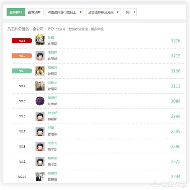 我们可以借鉴现在恨到老板都去学的积分管理模式。这个模式里主要是在积分的依据下打造游戏式管理,其利用争分的形式激发员工积极性。如下事件形成的效果,经过有效公示作用会很多不一样。