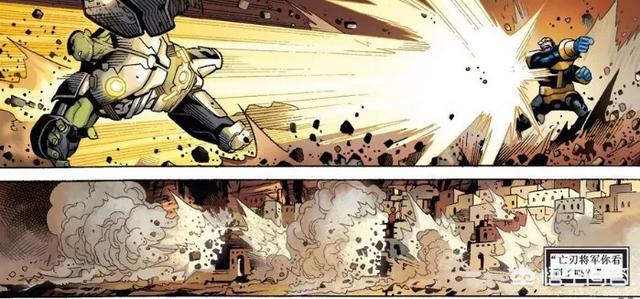 灭霸投掷出的战刀甚至比惊奇队长的光速飞行还快,以一己之力追着真个复仇者联盟打,最后要不是无限手套是钢铁侠打造的,灭霸肯定又一次打响响指了。