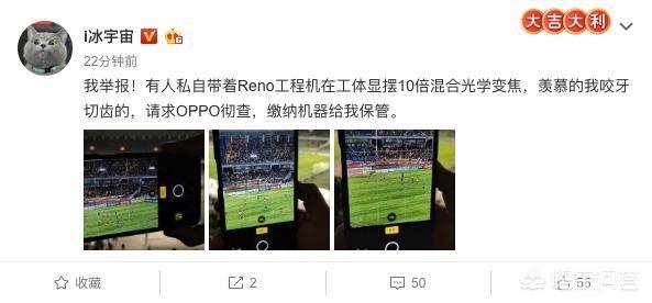 微博上这几天有网友曝光,有人带着Reno的工程机现身工体,疑似在做拍照场景测试,看看照片: