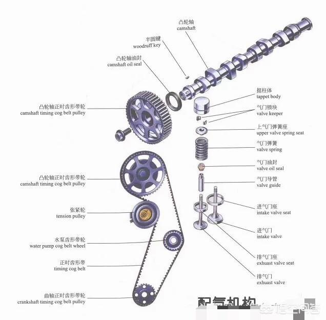 二,配气机构是发动机实现进排气工作循环,进行开启和关闭进气门和排气门,使燃油混合气或者空气进入气缸,使废气从气缸内排出,实现换气过程。