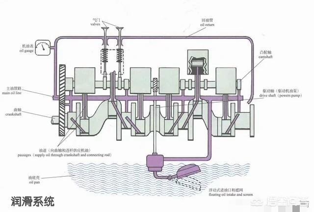 润滑系统的功用是向作相对运动的零件表面输送定量的润滑油,减小磨擦阻力,减少发动机磨损,并对零件表面进行清洗和冷却。