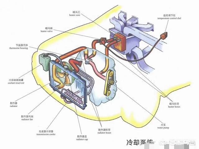 冷却系统的功用是将受热零件吸收的部分热量及时散发出去,保证发动机在合适的温度下工作。