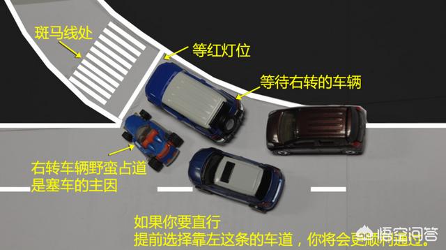 比如说右边有分岔路口,而你要直行,你就要提前走在左车道,毕竟当右车道有野蛮汽车突然转向插入分岔路口时,你就会被堵住。