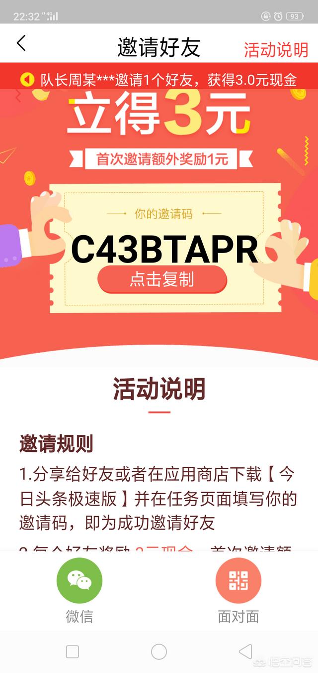 可以用头条极速版APP,记住是头条快速版,我的邀请码是C2VW62PY,做这个就是要坚持下去,一天多看新闻,才能拿更多的金币换钱,还有就是要多做里面的任务,拿更多金币,金币第二日头条自动换成钱,所以不用担心金币换不了钱的问题,已经微信提现过几次了,秒到账。