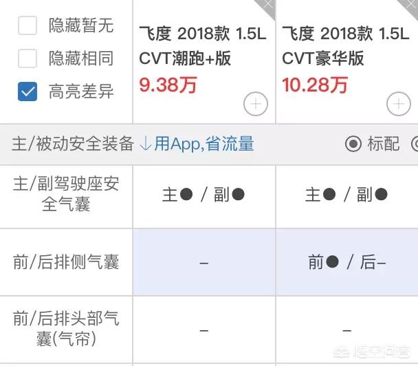 那么对于飞度来说选择高低配其实就很容易了,想要安全就选择顶配带ESP,不介意的话那就看你更在意哪一项配置选择就行了,价格差的也不是很多。