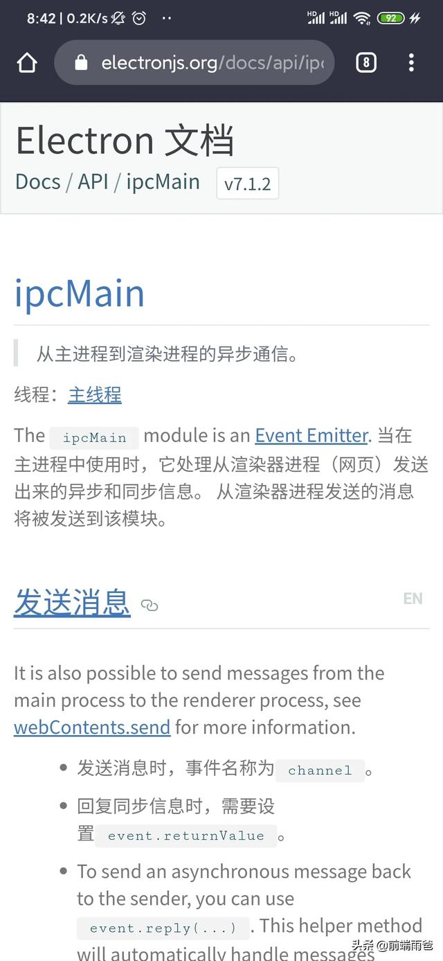 如果是渲染页面和主进程交互,那么可以使用 ipc 模式,这些你都能在官方文档上找到。假设你熟悉事件的通讯机制,或者vue 里 emit/on 之类的 api,相信了解 ipc 也相对容易。