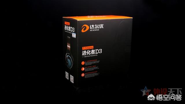 达尔优进化者系列D3黑金游戏耳机保留了橙黑色调搭配风格,敦实厚重的包装较之前的进化者D3耳机透明半开窗设计还是要强上了不少,双层包装设计更好的避免了耳机在运输过程中可能造成的损坏,外层包装印有这款耳机的型号以及基本信息说明。