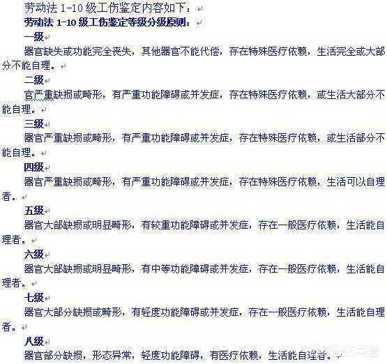 伤残等级,依据伤残的严重程度来判定,一般的伤残等级分为一级到十级伤残,划分标准如下图