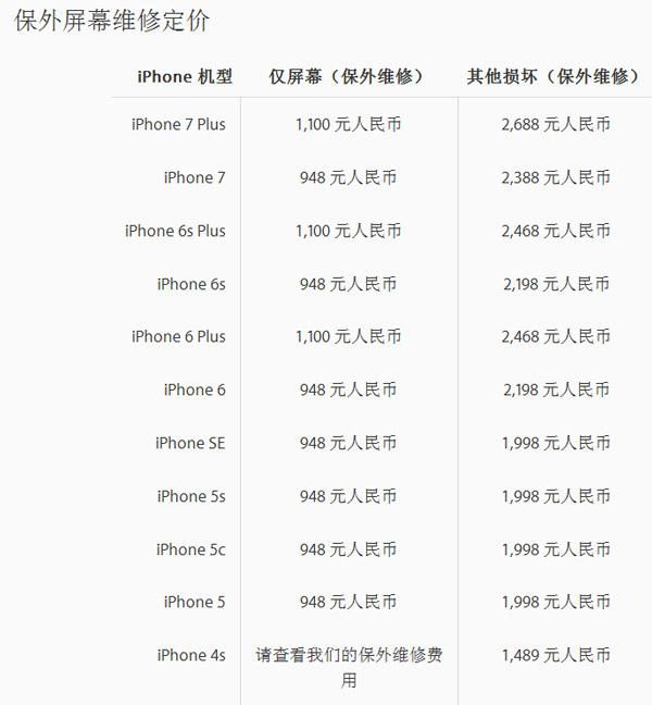 苹果所有机型的屏幕维修费用均可在苹果中国官网查到,如下图所示:
