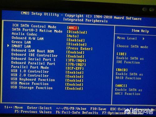 如果有,可能是你的sata模式不对。行为主板繁多,这里就不详细介绍哪里能找到sata模式,可以自行查找自己的主板BIOS。把sata模式从ahci改成ide。