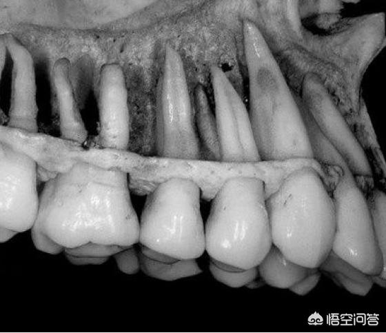 大家注意到了没有?牙齿可不是很浅的”种植“在牙床肉上面,而是很深很深的长在肉里面牙床里面的,有的竟然是外露部分的三倍有余。为了增加牙齿的牢固度,中间部分的牙齿根部都是叉子形状的,板牙部分为了增加耐磨的力度和面积,他们的根部是粗粗的柱子桩的样子。所以这么结实牢固的牙齿,它的根部发展和延伸,必然会影响到人面部的脸。