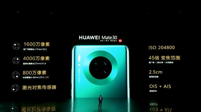 华为在Mate 30Pro相机上再次投入了大量精力和创新,后置摄像头由40MP f/1.6广角,8MP f/2.4长焦和40MP f/1.8超广角加一个3D景深镜头组成。所有这些都使得在纸上建立一个强大的相机配置。华为Mate30 Pro电影摄像头能够拍摄4K HDR视频,4倍于全高清分辨率,保留超高动态范围,实现虚化摄像,并且实现了业界最高视频感光度ISO 51200、最高帧率7680帧,同时支持双OIS+AIS超级防抖和4K延时摄影。值得一提的是,华为Mate30 Pro的DXOMark得分是第一名,综合成绩121分,照片131分,视频100分。