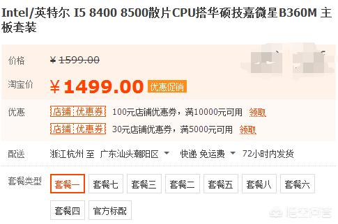 i5-8400 6核6线程,4GHz的动态加速频率,9MB的三级缓存,功耗65W。某宝价位在1005元,涨价了,前两天还是945元。当然如果能搭配主板一起选购会优惠一点。