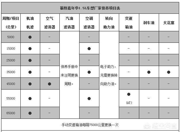 如图,这是福特嘉年华4S店给出的保养项目表。