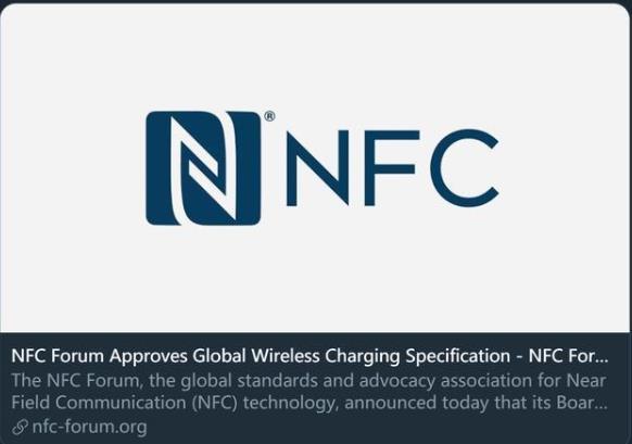 近日,NFC论坛宣布了一项新的NFC规范,该规范将允许未来支持NFC的设备提供无线充电功能,充电传输功率最高1W。