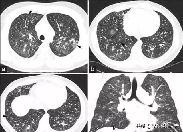 这是一位日本的中年男性病人,确诊胃腺癌6周,因为进行性呼吸困难,呼吸急促入院检查,双肺多发点片状影,这个病人很快死亡了,病理结果是肿瘤血栓性微血管病。这是由于一些转移性的小瘤栓堵塞肺小动脉,并引起一系列病理变化,这种严重的并发症预后差,平均生存期只有9天。