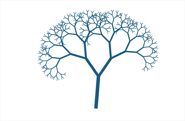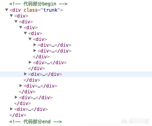 这个效果中使用的是一系列的div,每个div内部包含两个子div,表示树的分支,一层层往下,每层都比上一层分支更细。