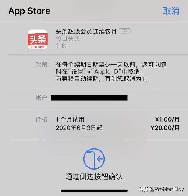 首先是 IAP 的界面:标题为 App Store,支付不需要选择支付卡。