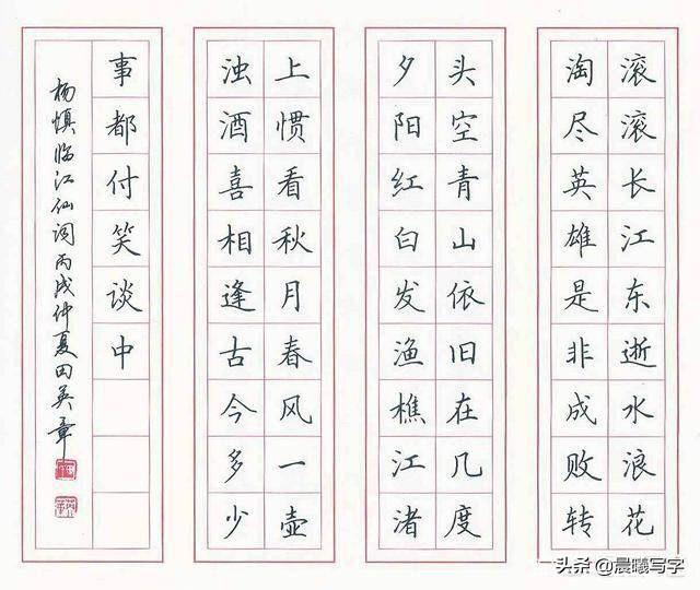 庞中华的楷书我觉得是最好的,没有之一,结构合理,笔画严谨,字体饱满。个人认为初学者从他的楷书练起,利于打好基础,有助于慢慢形成自己的风格。行书的话,相比其他书法家逊色不少,过于刻板方正,不够大气。